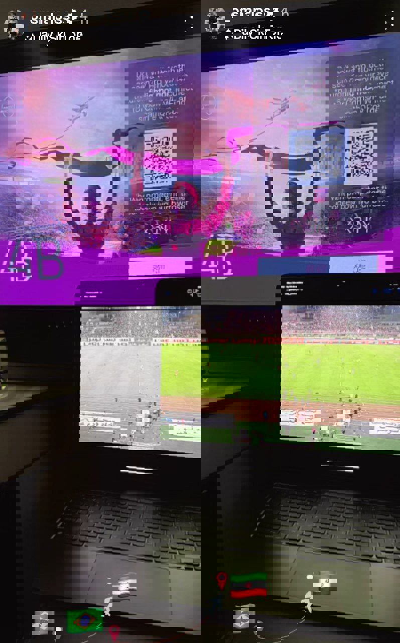در این استوری، تصویر نمایشگر هواپیما دیده میشود و در پایین آن لپتاپ اوسمار دیده میشود که روی آن دیدار آخر پرسپولیس به نمایش درآمده است. او با استفاده از ایموجی پرچمهای برزیل و ایران مسیر سفر طولانی خود از زادگاهش به تهران را نشان داده است.