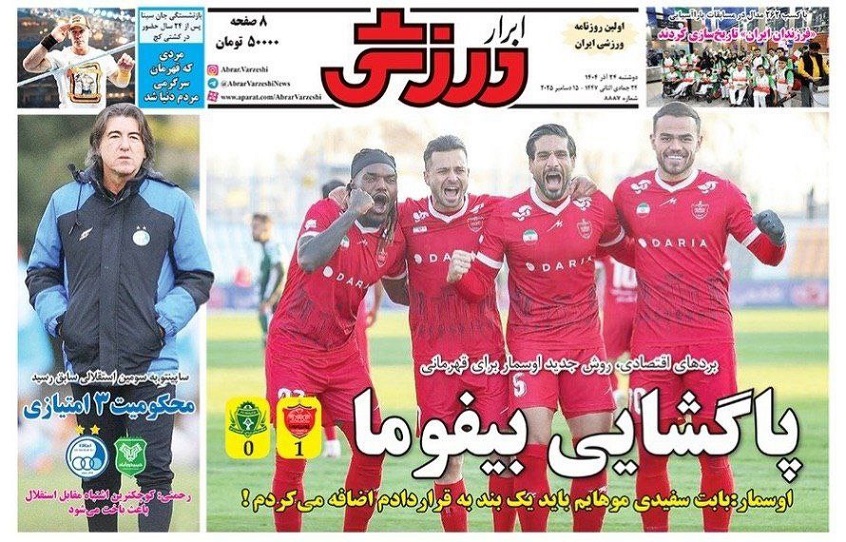 | 2 | پرسپولیس | 14 | 7 | 25 |