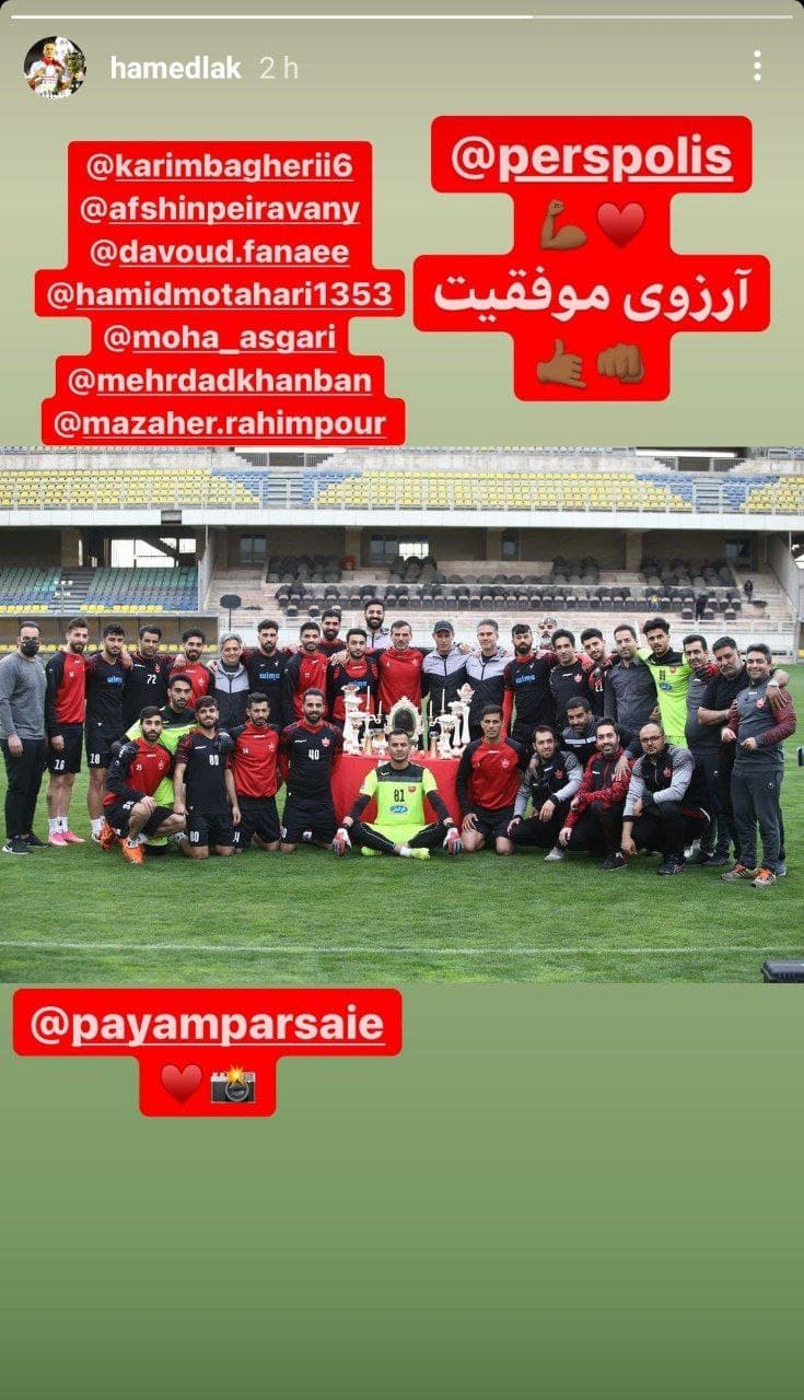 حامد لک با انتشار یک استوری برای همتیمیها و مربیانش آرزوی موفقیت کرد.