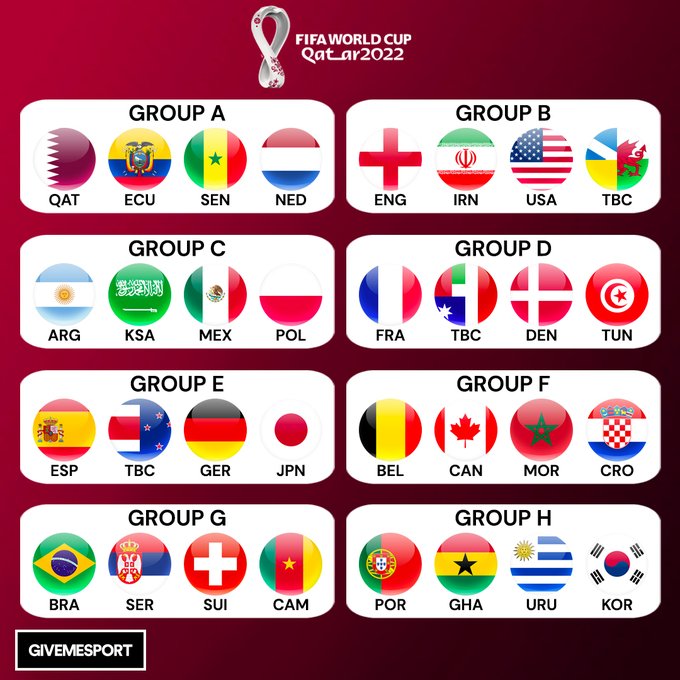*گروه بندی جام جهانی 2022 قطر به شرح زیر است: